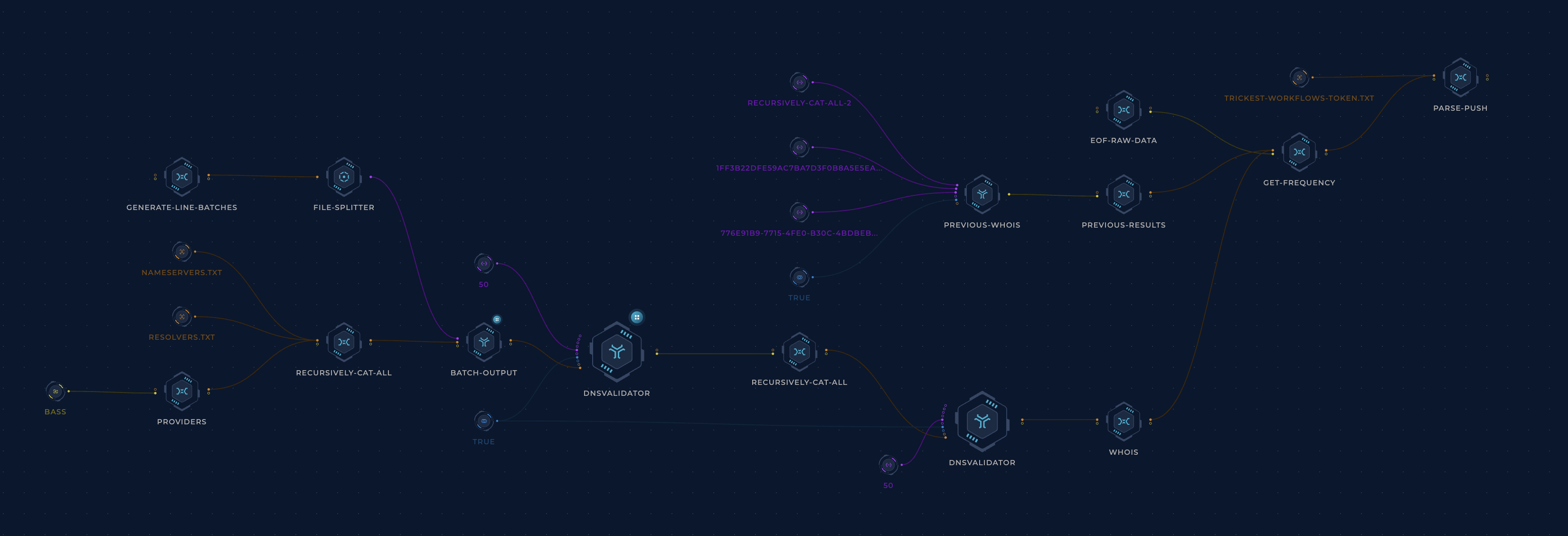 A Trickest workflow creates an initial dataset of resolvers from various sources and then uses multiple instances of dnsvalidator to validate and re-validate this dataset and make it as reliable as possible.